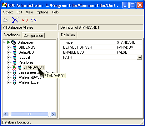 на рис. 17.5 приведен вид, окна BDE Administrator после создания псевдонима