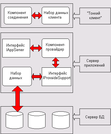 Для передачи данных между сервером приложений и клиентами используется интерфейс AppServer, предоставляемый удаленным модулем данных сервера приложений. Этот интерфейс используют компоненты-провайдеры TDataSetProvider на стороне сервера и компоненты TClientDataSet на стороне клиента.